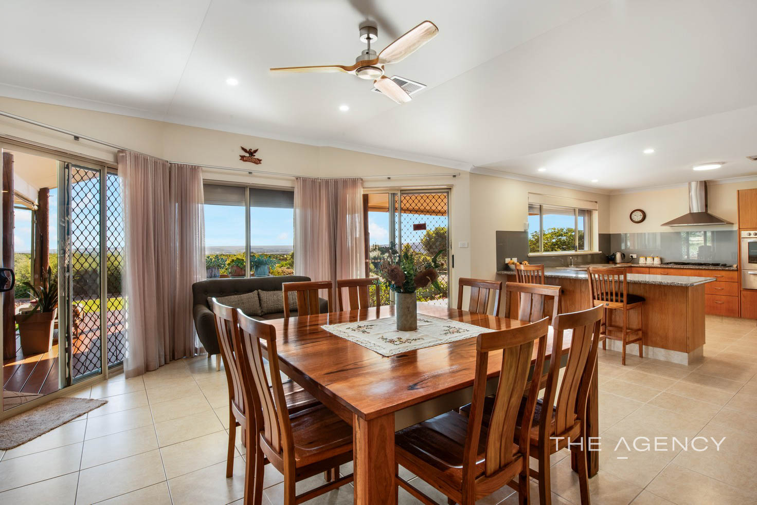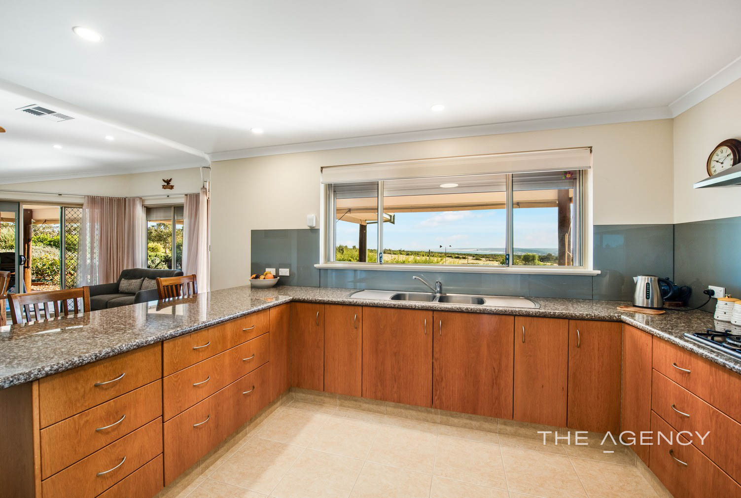 The North facing Kitchen/Dining area gives access to the alfresco area with views up the coast to town and the bush hinterland, the Gourmet kitchen features 5 Burner gas cooktop with a gas oven, built in pantry and Granite benchtops. The dining area is a generous size with vaulted ceilings and dual access to the deck/verandah and alfresco.