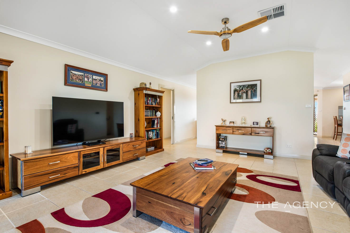 The master bedroom is separate to the 2 minor bedrooms by the Lounge heatre room that also has vaulted ceilings. The master bedroom is huge with new carpets, walk in robe, new en-suite that is tiled to the ceiling and Cyclone shutters to the window that overlooks a private garden.