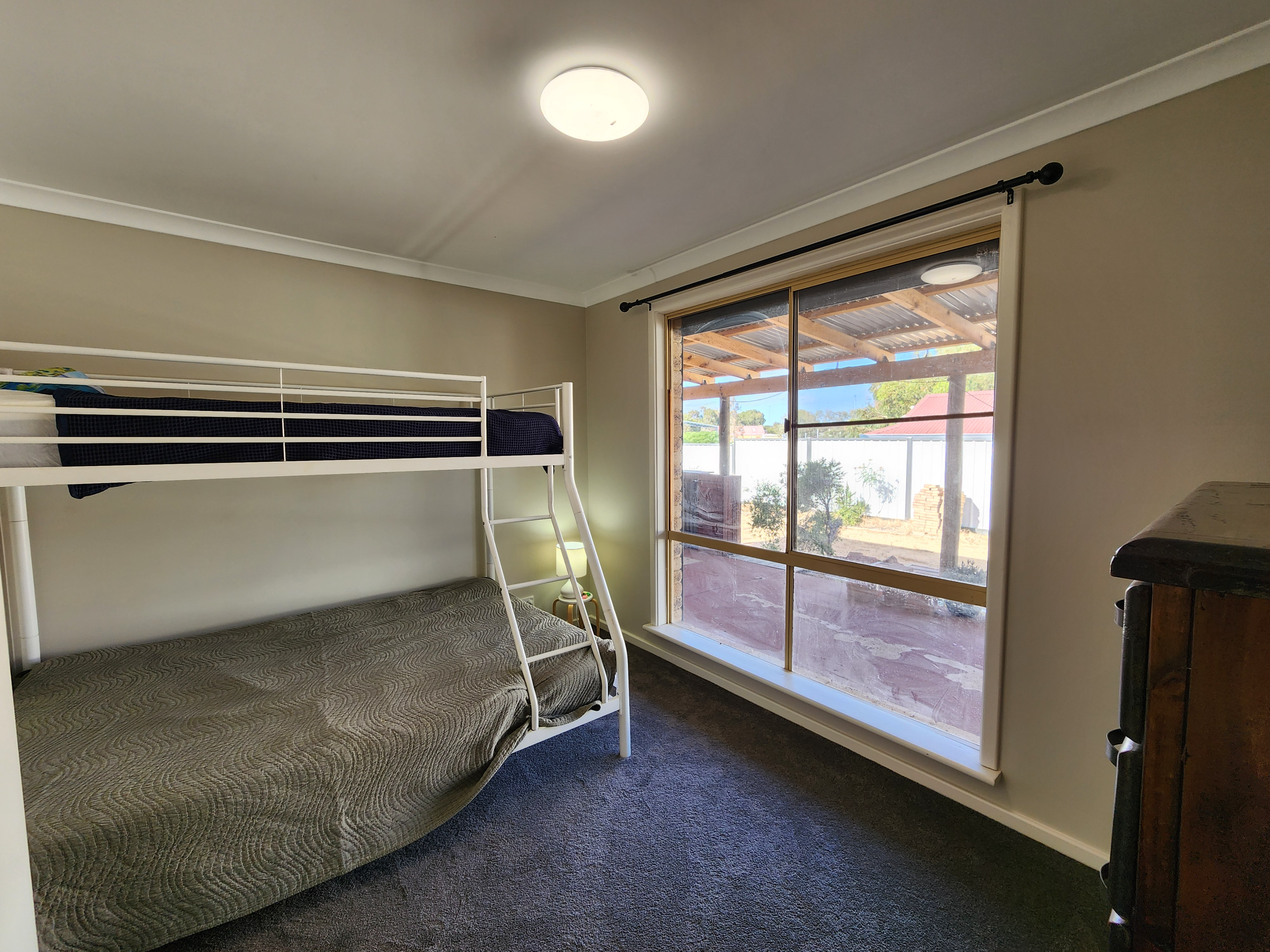 *Through the front door and into the carpeted lounge area, this is a generous space with lots of natural light with an open-plan design and glass sliding doors out to the rear verandah. *The kitchen is a U shape and features electric stove top and oven with double sink that looks out to the garden beyond it's a very inclusive Kitchen. *Down the hallway on the right is the laundry with separate toilet and access to the rear patio/entertaining area. Opposite the laundry is the spacious 2nd Bedroom that is carpeted and has built in robes. *The master bedroom is also carpeted and boasts floor to ceiling windows plus built in Wardrobe. The 3rd bedroom is a generous size with built in robes also. *The bathroom is an older style with bath, located next to the Laundry the simple layout works for this home. *This is a corner block and behind the fence are established gardens with huge entertaining area to the North with access to the back yard from Tiki Cove. At the other end of the house is the new 6.5m shed with 6m apron which is accessible from Glass St. * To arrange your private viewing of this home give me a call anytime Cheryl 0427 981 955 I have been selling real estate in Kalbarri for 22 years and I'm happy to help you with your property journey.