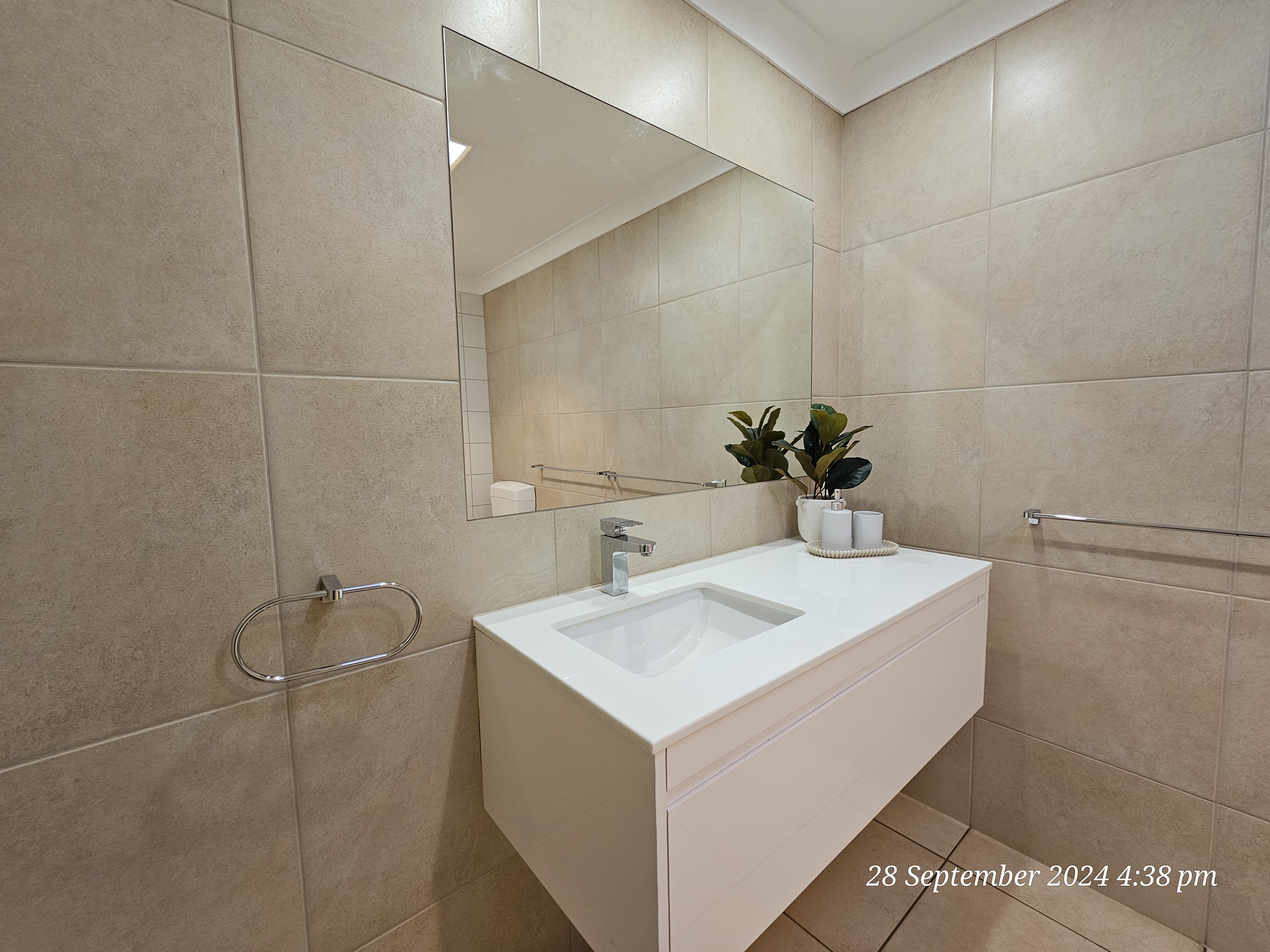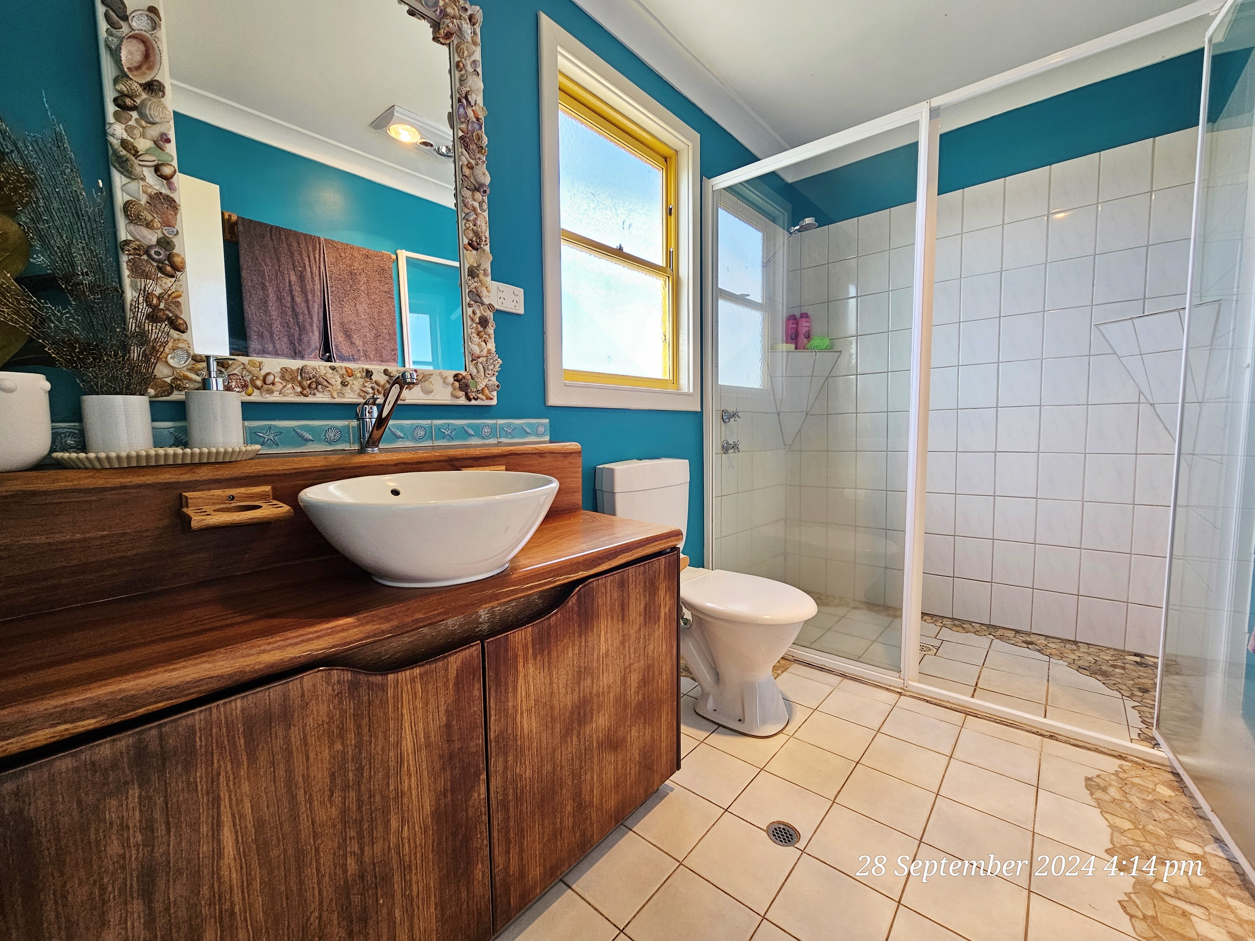- Bathroom featuring funky tiling
