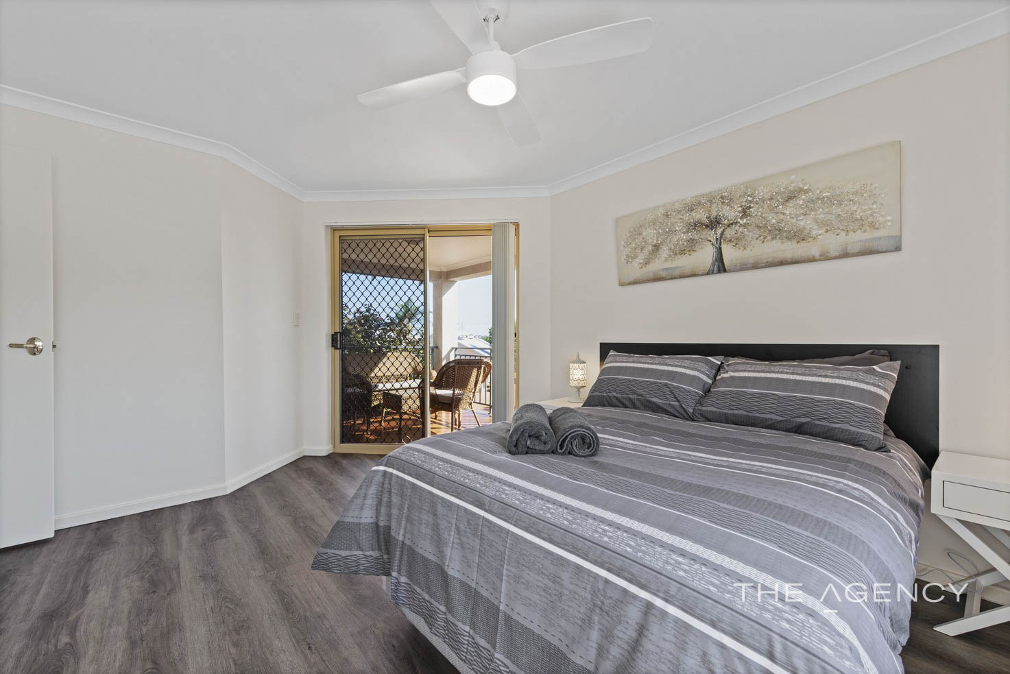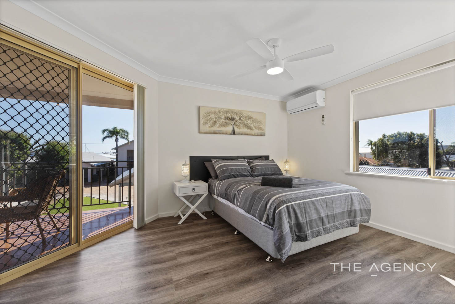 The master bedroom gives access to the balcony that boasts views North up the Coast and East to the Murchison River.