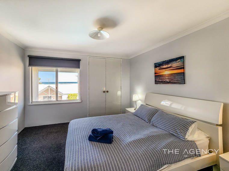 Also situated upstairs is the master bedroom with built in robe and en-suite, the view out to the Murchison river mouth is also enjoyed from the bedroom so you can check the ocean conditions without leaving the room.